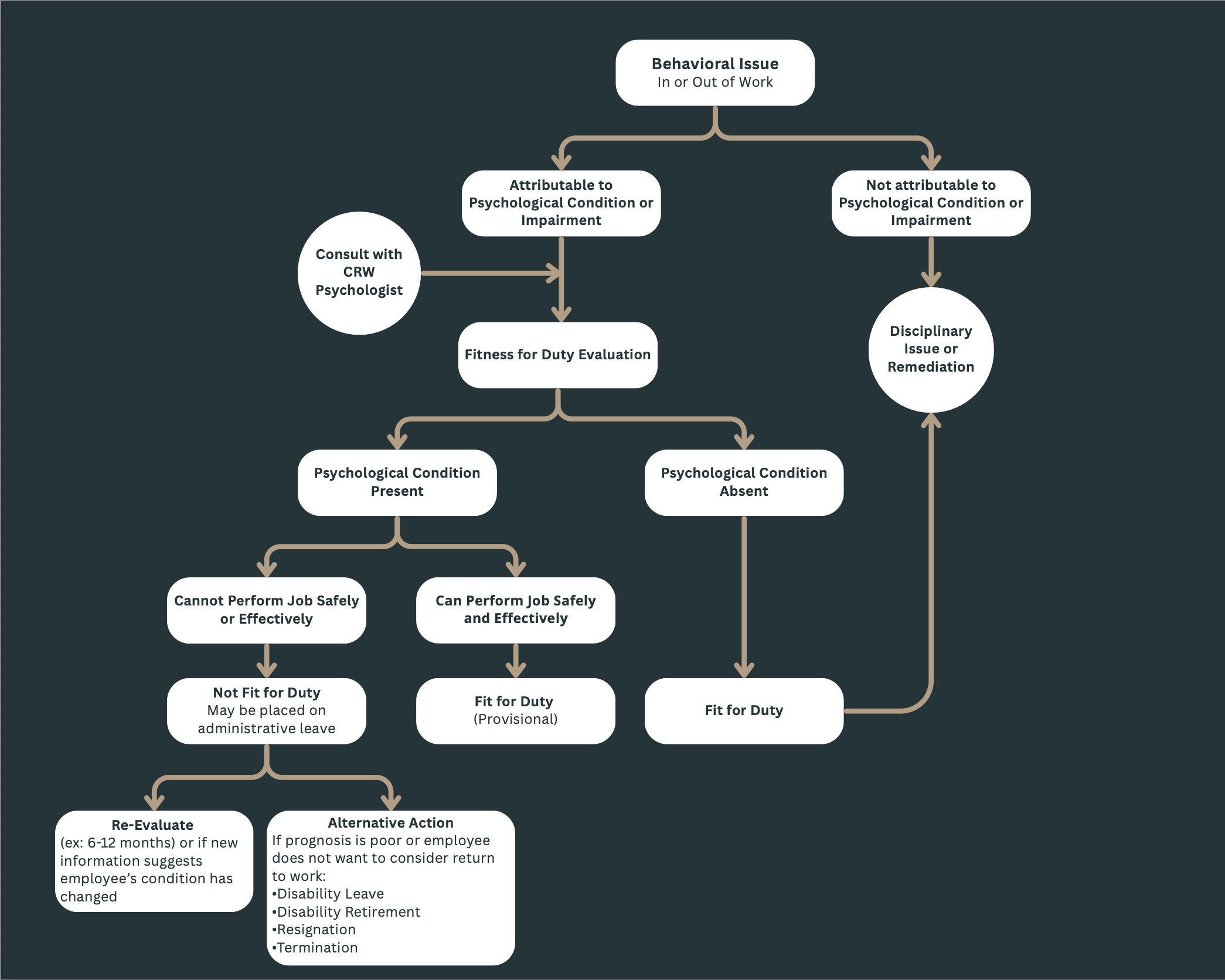 Thank you for your interest in CRW’s Fitness for Duty Evaluation (FFDE) services. We understand that these referrals are time-sensitive, we will respond within one business day. Our aim is to schedule the assessment within one week of receiving the referral, and to send the completed report within 7-14 business days following the assessment.